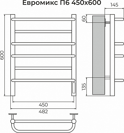 Евромикс П6 450х600 электро КС 9005 матовый ( new встроен диммер) Полотенцесушитель TERMINUS