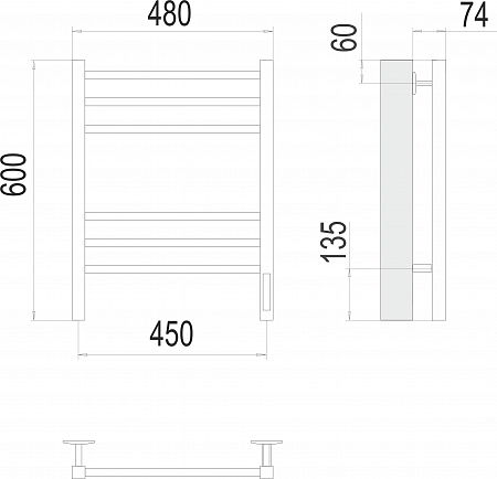 Ватикан П6 450х600 электро КС 9005 матовый ( new встроен диммер) Полотенцесушитель TERMINUS